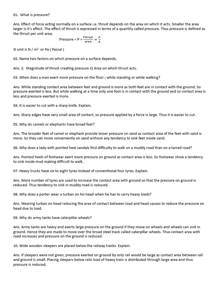 Ans. Sharp edges have very small area of contact, so pressure applied by a force is large. Thus it is easier to cut.