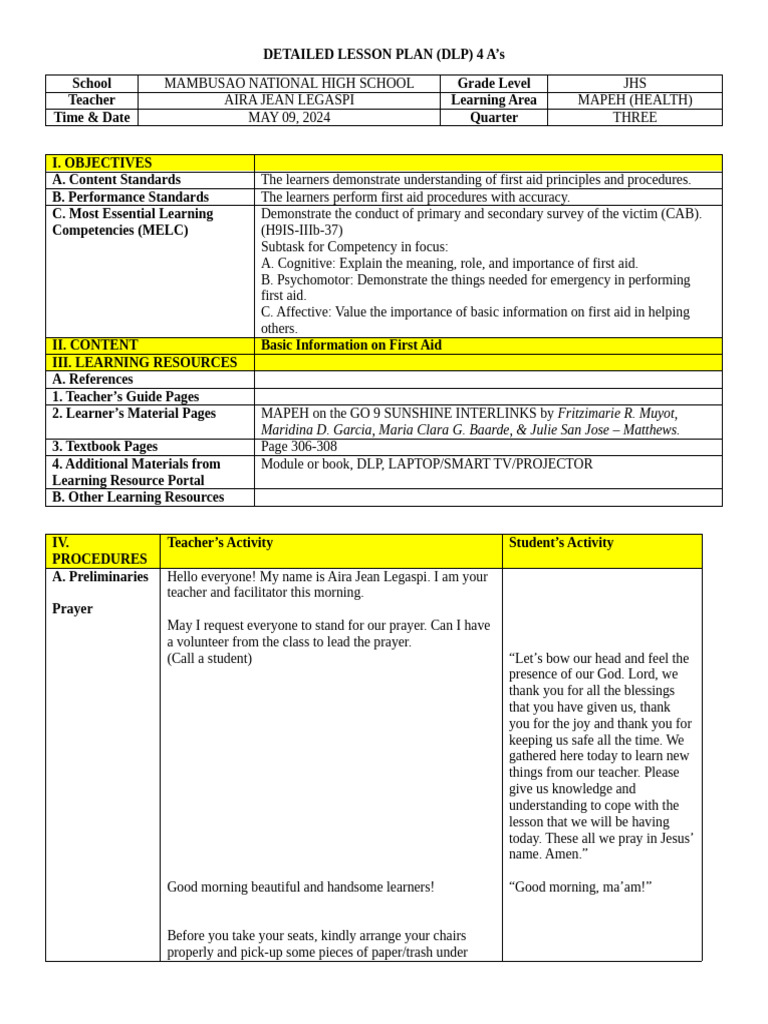 DETAILED LESSON PLAN (DLP) 4 A’s