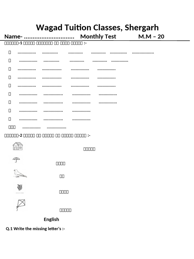 Name- ............................. Monthly Test M.M – 20