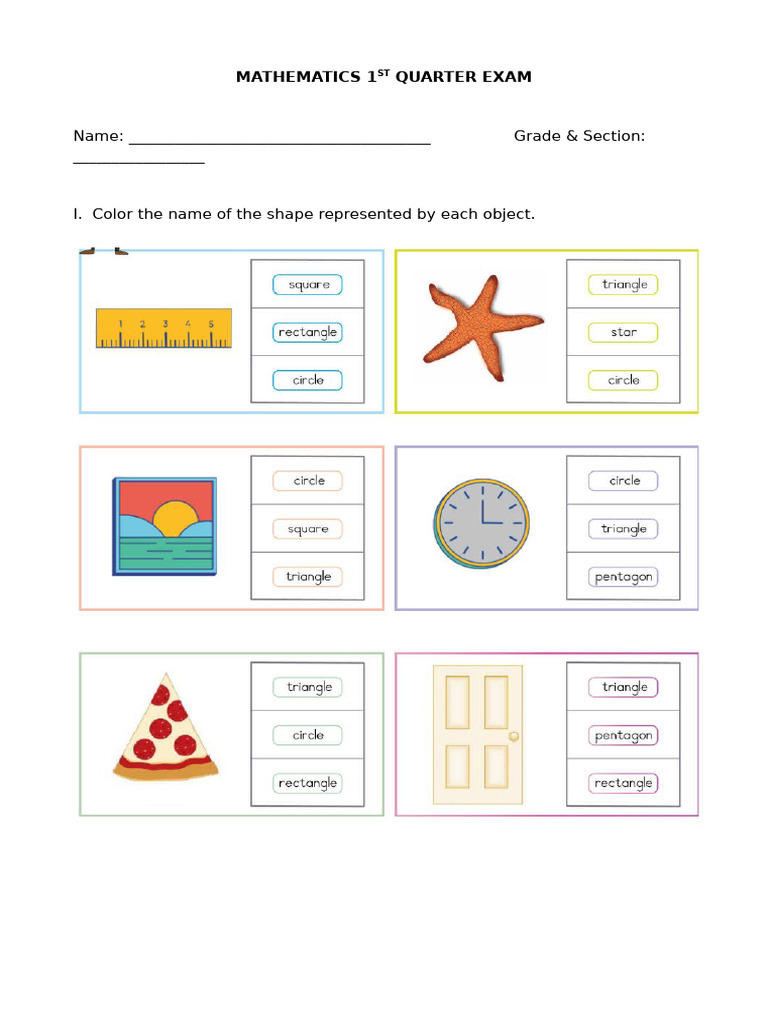 III. Read carefully the instructions below and draw the corresponding shapes.