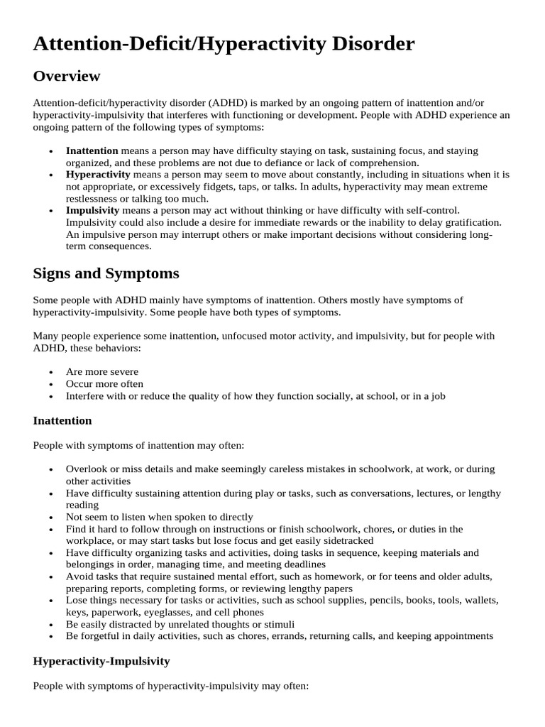hyperactivity-impulsivity. Some people have both types of symptoms.