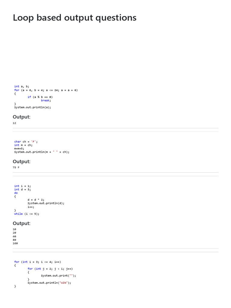 Loop based output questions