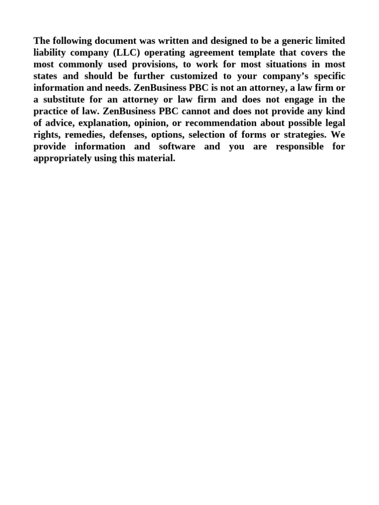 liability company (LLC) operating agreement template that covers the