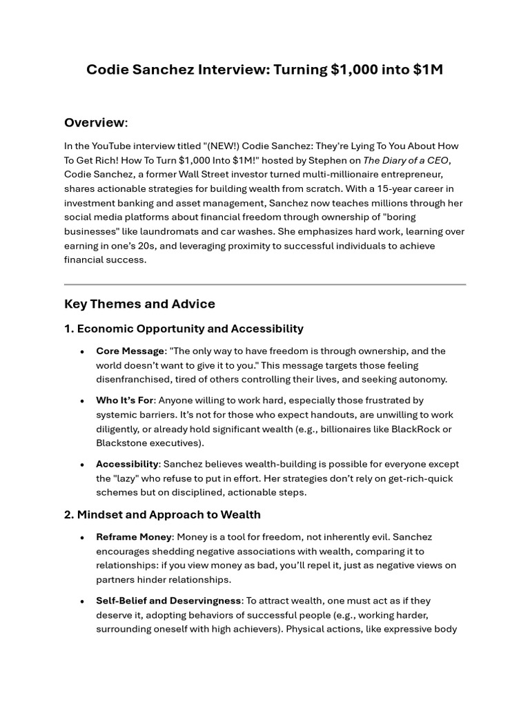 Codie Sanchez’s interview provides a roadmap for wealth-building that emphasizes