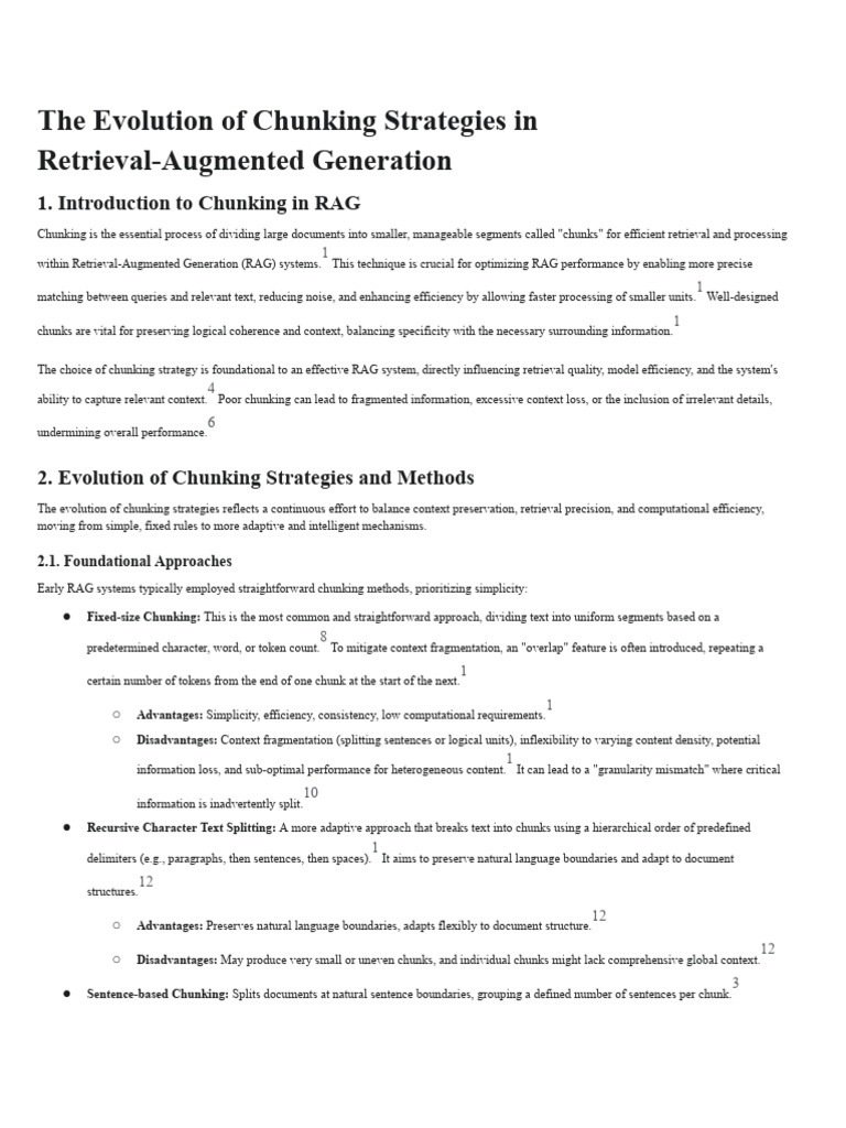 ability to capture relevant context. Poor chunking can lead to fragmented information, excessive context loss, or the inclusion of irrelevant details,