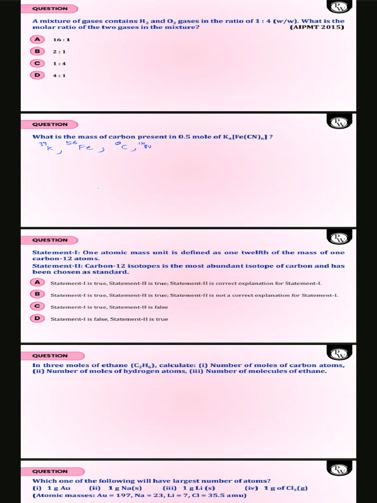 Whatis the mass of carbon present in 0.5 mole of K,[Fe(CN),] ?