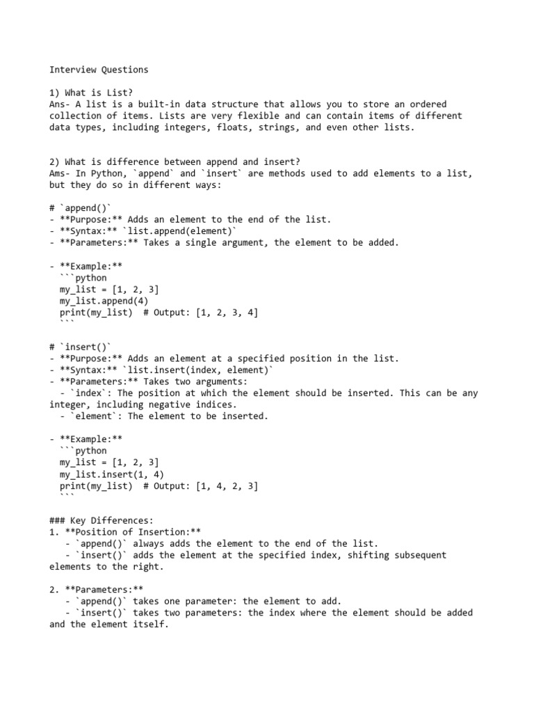 Ams- In Python, `append` and `insert` are methods used to add elements to a list,