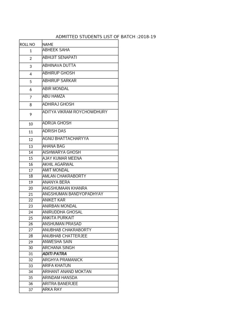 ADMITTED STUDENTS LIST OF BATCH :2018-19
