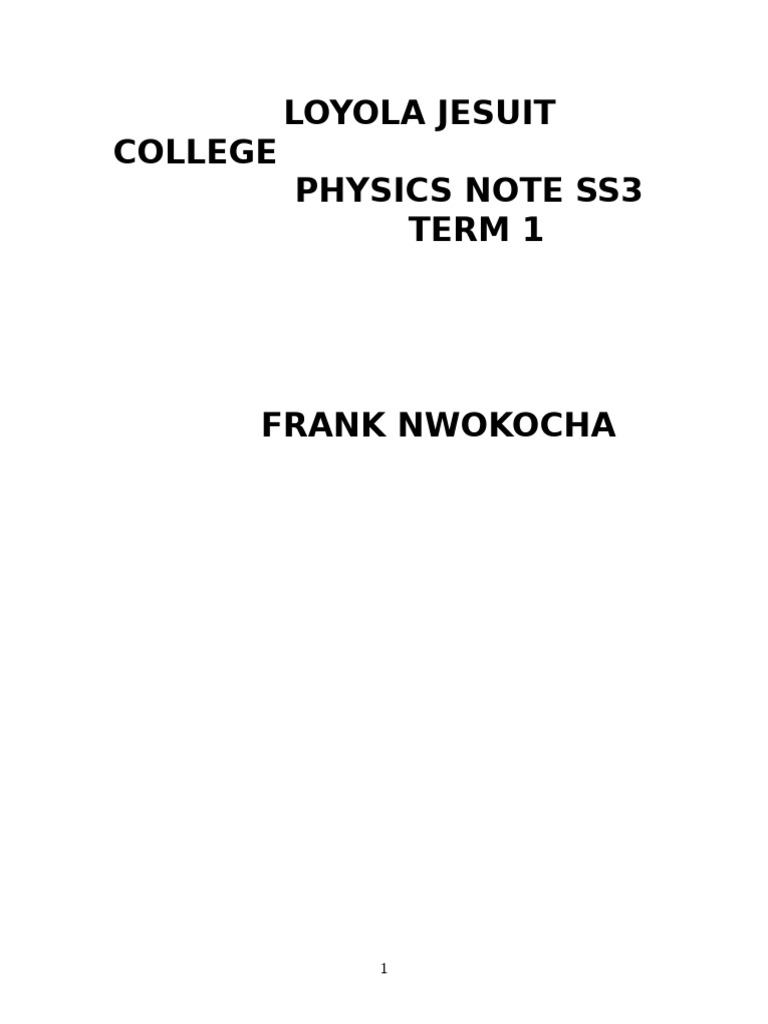 Loyola Jesuit College Physics Note Ss3 Term 1