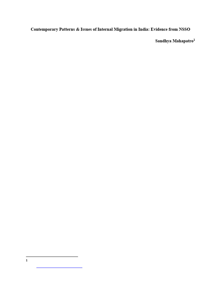 change over time. Studies on internal migration based on the Census as well as NSSO, informs