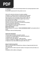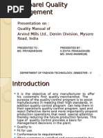 activity in Q.C instruction sheet. General appearance, presentation of the garment and trim