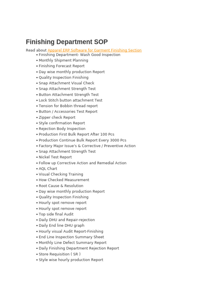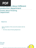 operations especially in the cutting and the sewing dep. The finishing department works in