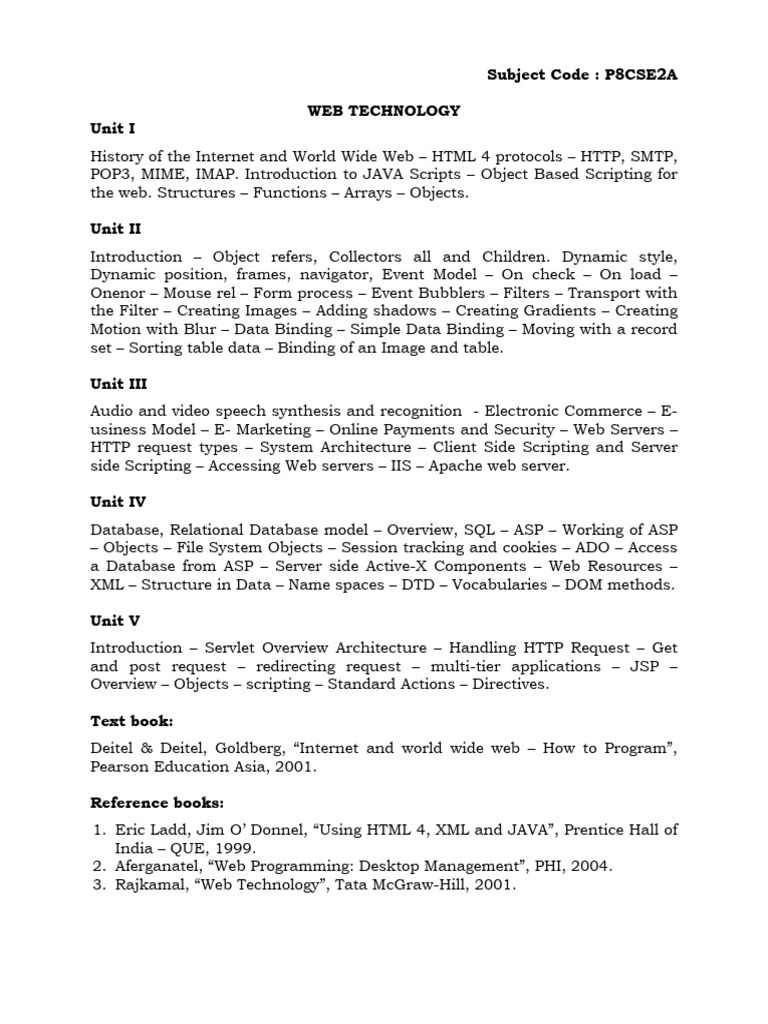 Subject Code : P8CSE2A