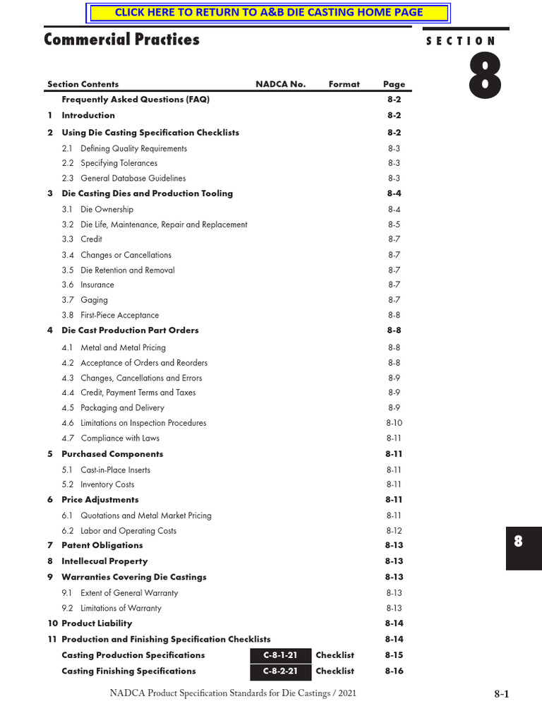8-16 NADCA Product Specification Standards for Die Castings / 2021