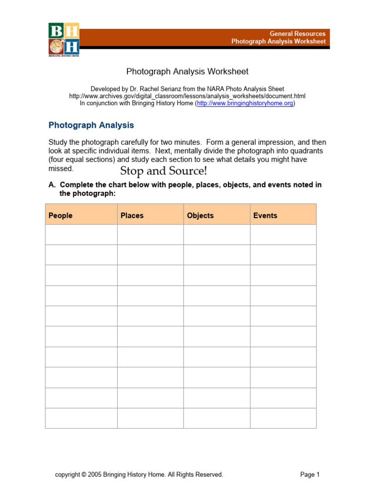 Photograph Analysis Worksheet