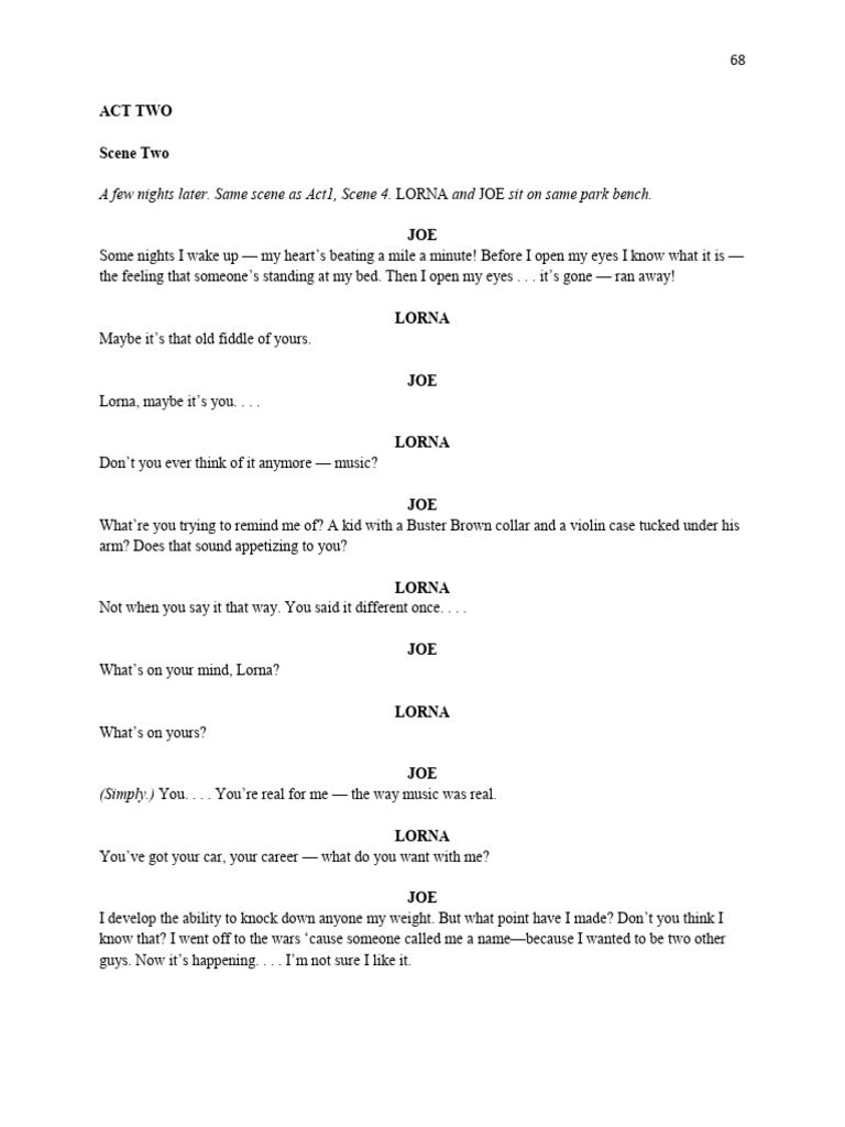 (Standing and facing her.) Lorna, when I talk to you . . . something moves in my heart. Gee, it’s the