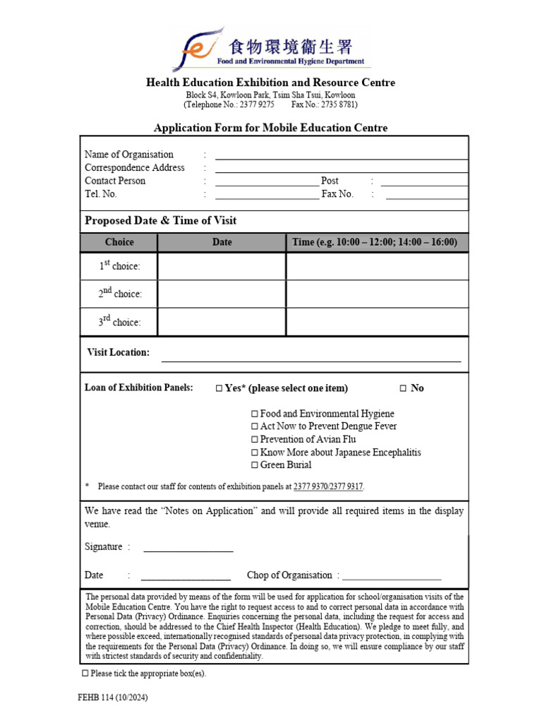 3. FEHD does not undertake to accept all applications. Successful applicants will be