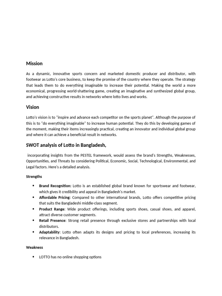 divides the company's activities into Primary Activities . Here's an analysis for Lotto Shoes in Bangladesh: