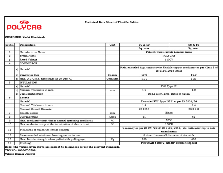 Technical Data Sheet of Flexible Cables