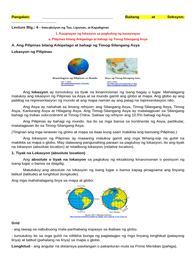 A. Ang Pilipinas bilang Arkipelago at bahagi ng Timog-Silangang Asya