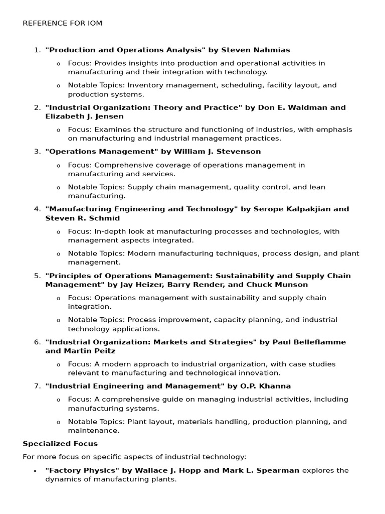 o Notable Topics: Plant layout, materials handling, production planning, and