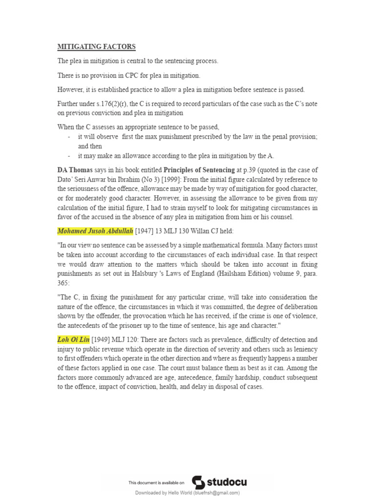 calculation of the initial figure, I had to strain myself to look for mitigating circumstances in