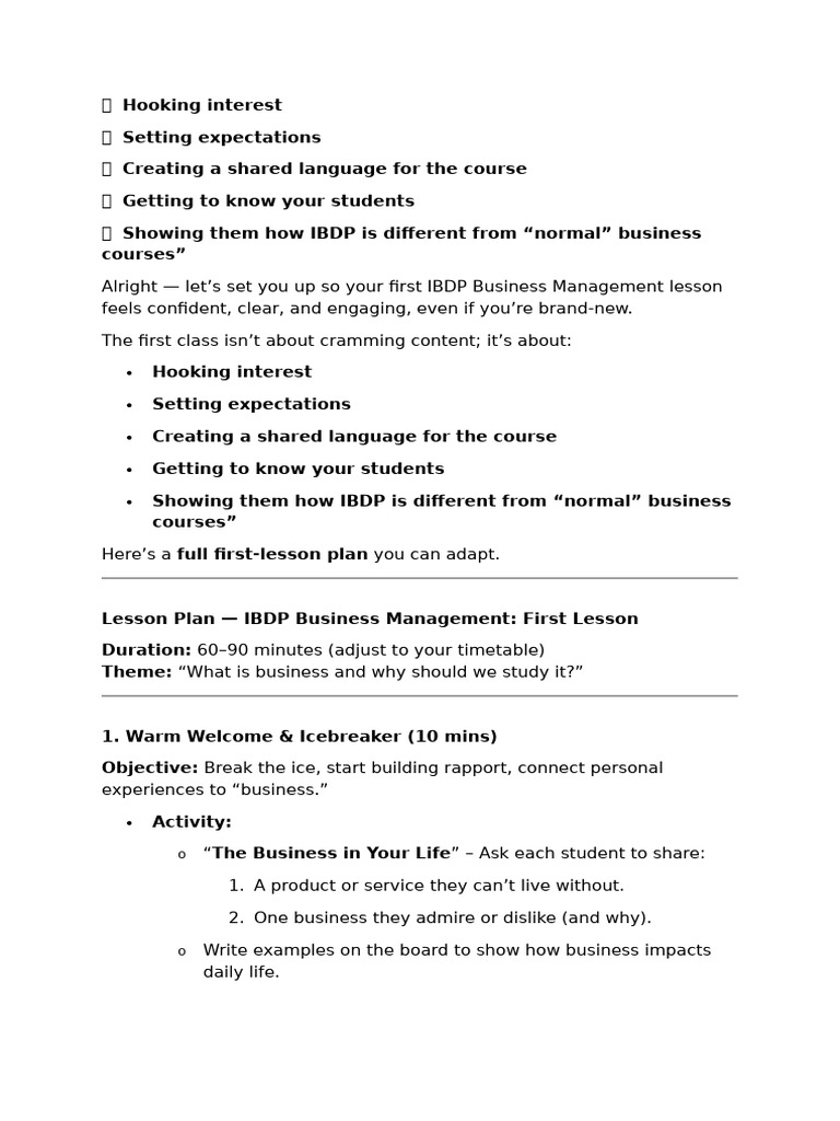 Alright — let’s set you up so your first IBDP Business Management lesson