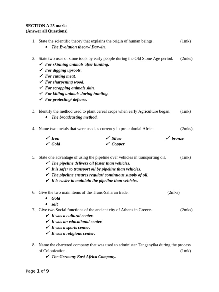 2. State two uses of stone tools by early people during the Old Stone Age period. (2mks)