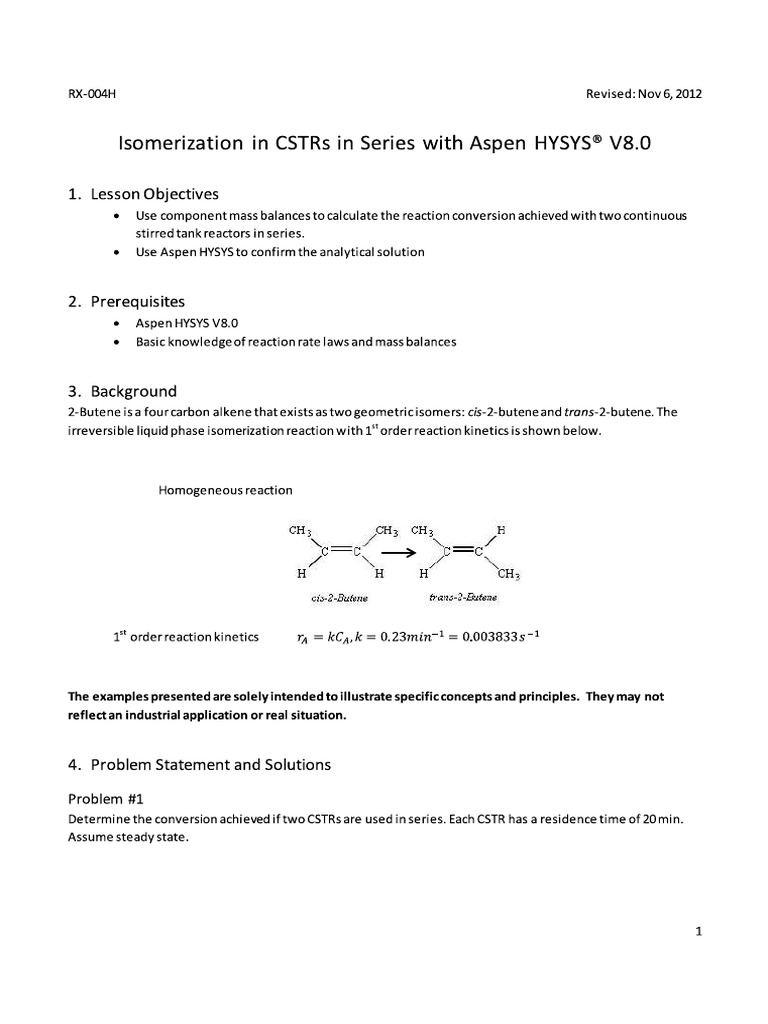 Isomerization in CSTRs in Series with Aspen HYSYS® V8.0