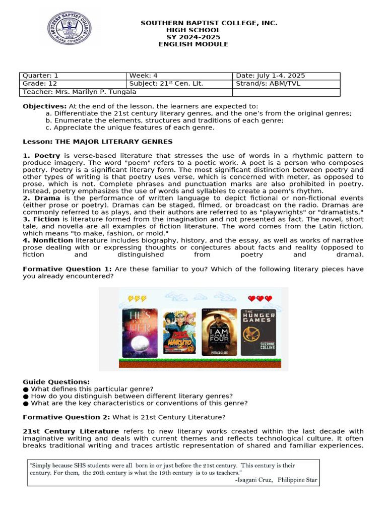 Grade: 12 Subject: 21st Cen. Lit. Strand/s: ABM/TVL