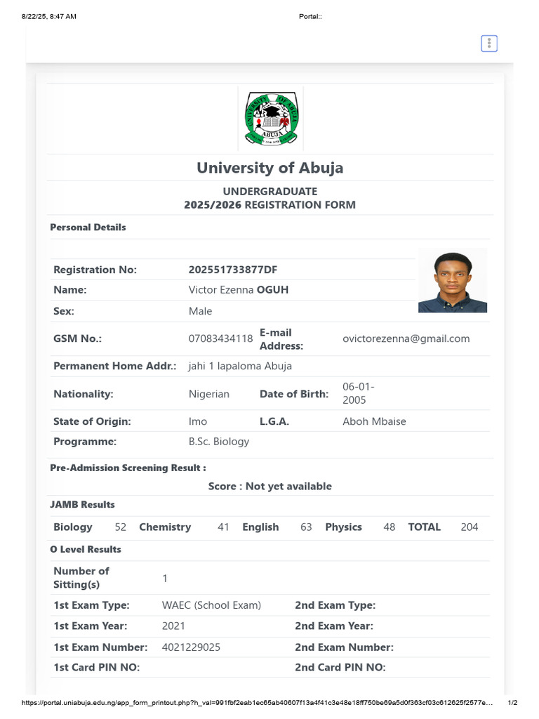 https://portal.uniabuja.edu.ng/app_form_printout.php?h_val=991fbf2eab1ec65ab40607f13a4f41c3e48e18ff750be69a5d0f363cf03c612625f2577e… 1/2