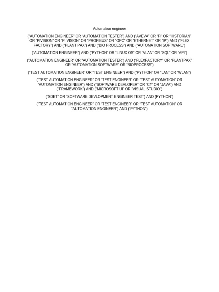 (“AUTOMATION ENGINEER”) AND (“PYTHON” OR “LINUX OS” OR “VLAN” OR “SQL” OR “API”)