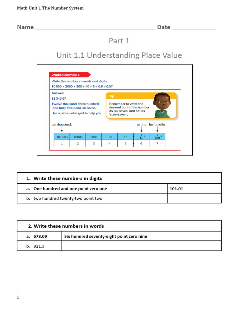 Ten thousands Thousands hundreds tens ones tenths hundredths