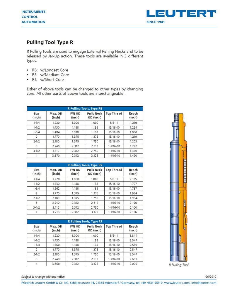 R Pulling Tools are used to engage External Fishing Necks and to be