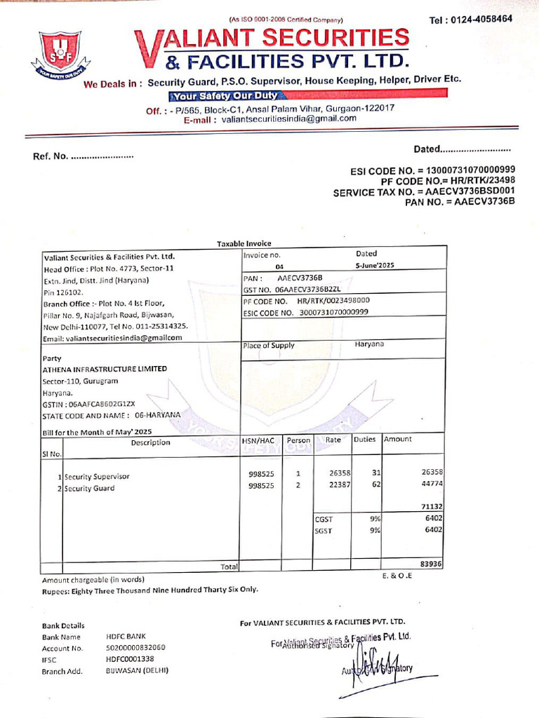 Employer's Name: VALIANT SECURITIES & FACILITIES PVT. LTD