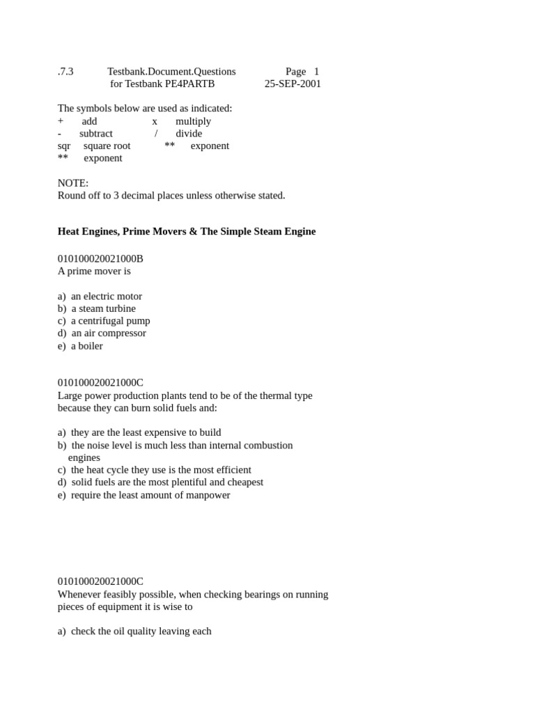 for Testbank PE4PARTB 25-SEP-2001