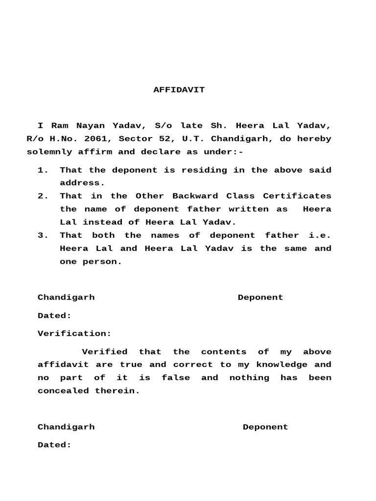 1. That the deponent is residing in the above said