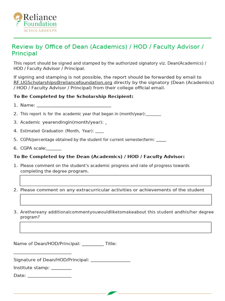 RF.UGScholarships@reliancefoundation.org directly by the signatory (Dean (Academics)
