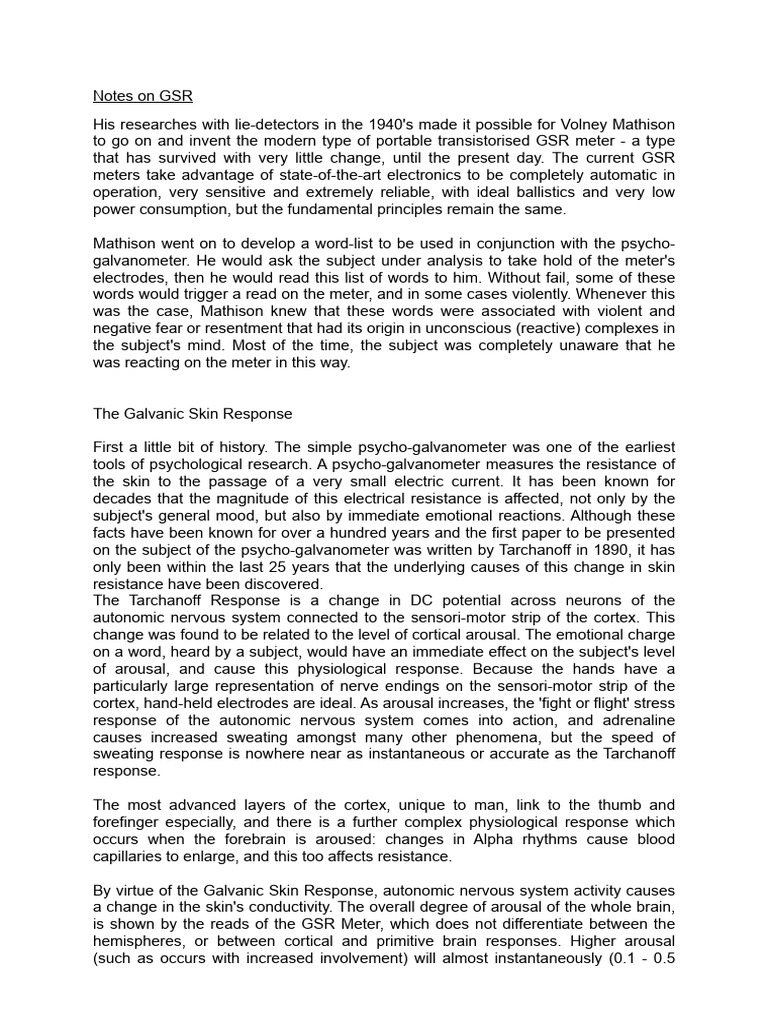 being contacted. The GSR Meter is an invaluable aid but it does not necessarily tell
