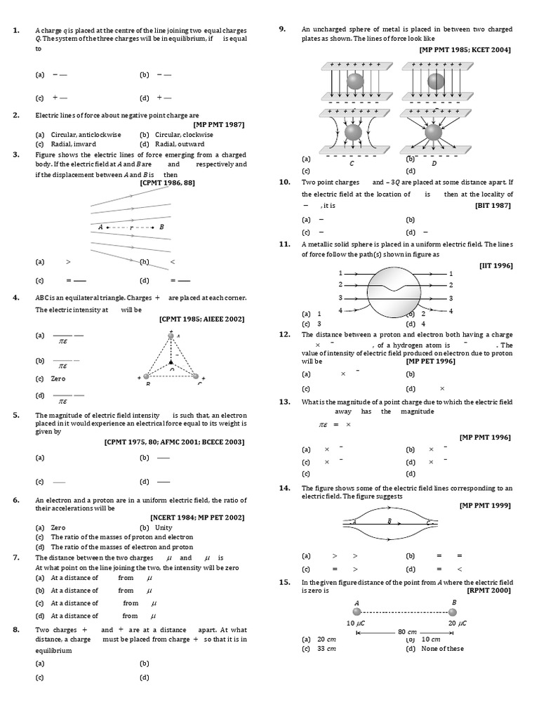 1. A charge q is placed at the centre of the line joining two equal charges 9.