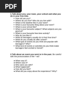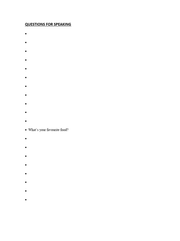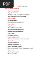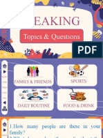 The document consists of a list of questions designed for speaking practice. The questions cover various topics including personal preferences, daily routines, family, and hobbies. They aim to encourage conversation and self-expression.
