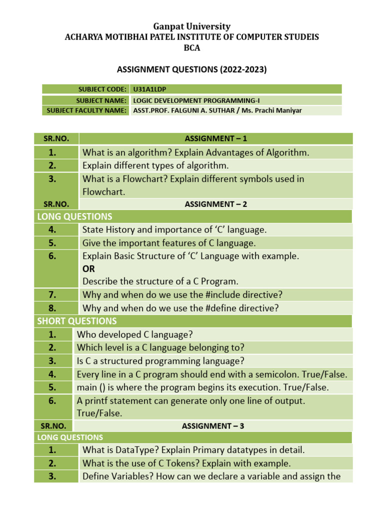 ASSIGNMENT QUESTIONS (2022-2023)