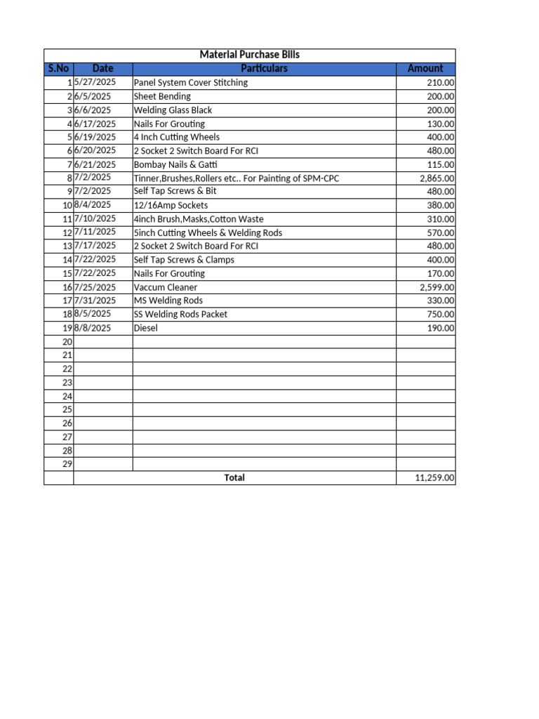 8 7/2/2025 Tinner,Brushes,Rollers etc.. For Painting of SPM-CPC 2,865.00