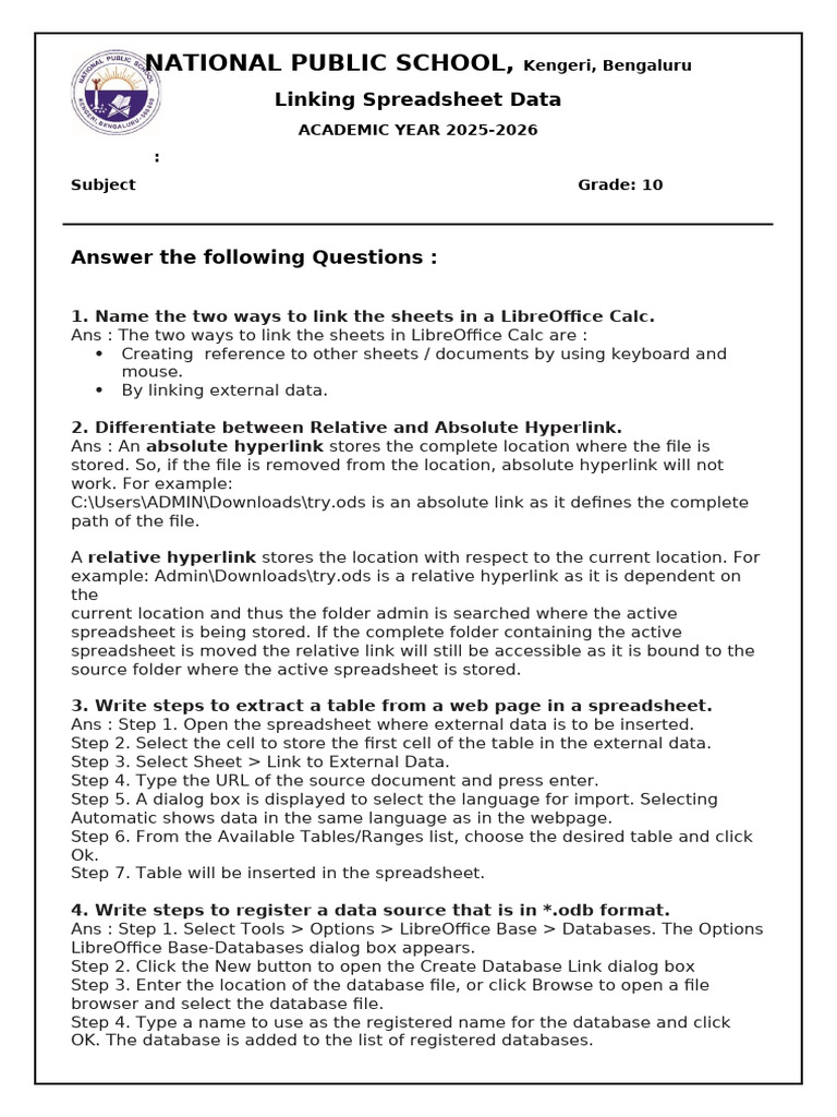 1. Name the two ways to link the sheets in a LibreOffice Calc.