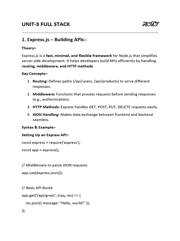 1. Routing: Defines paths (/api/users, /api/products) to serve different