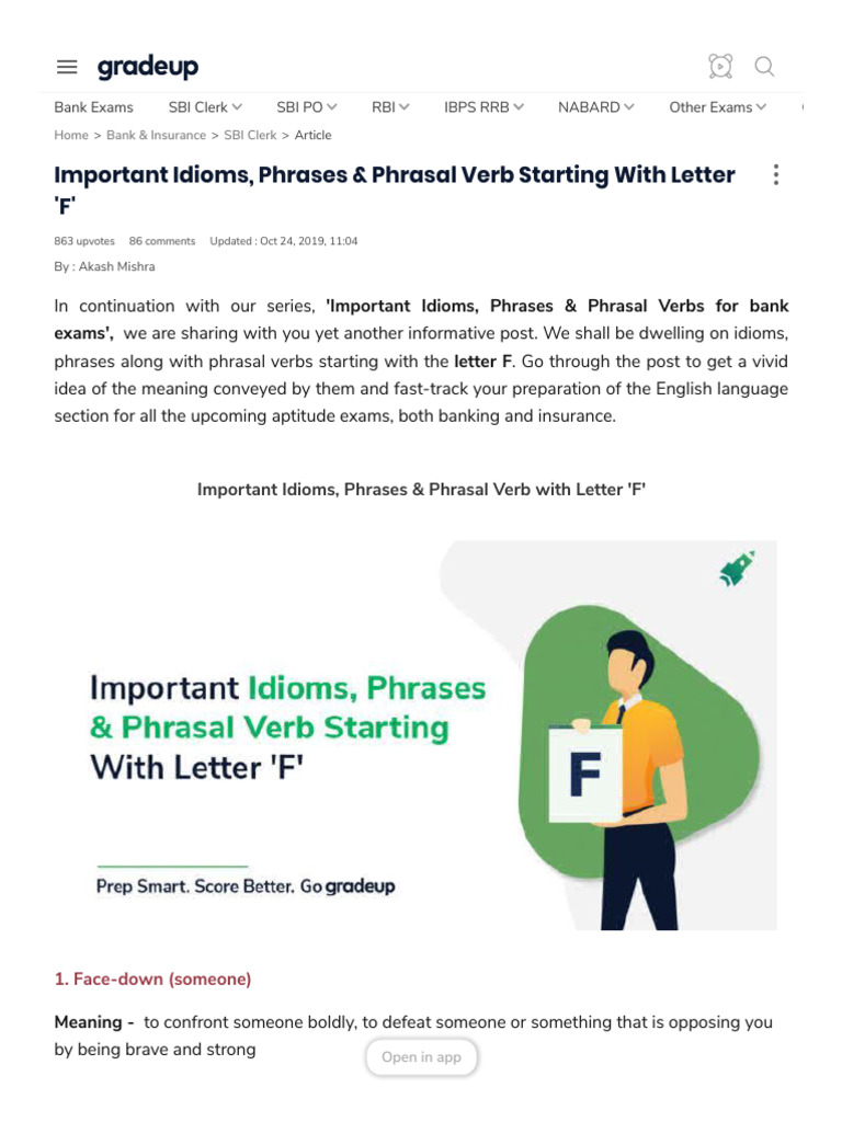 Important Idioms, Phrases & Phrasal Verb Starting With Letter