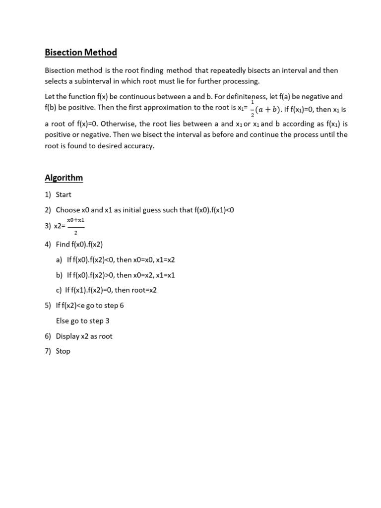 f(b) be positive. Then the first approximation to the root is x1= (𝑎 + 𝑏). If f(x1)=0, then x1 is