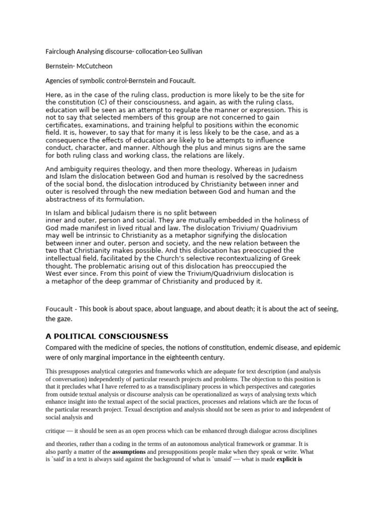 Fairclough Analysing discourse- collocation-Leo Sullivan