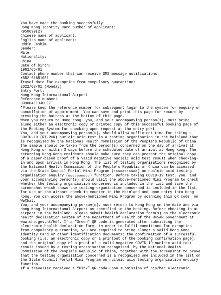 from compulsory quarantine, you are required to bring along: a valid Hong Kong