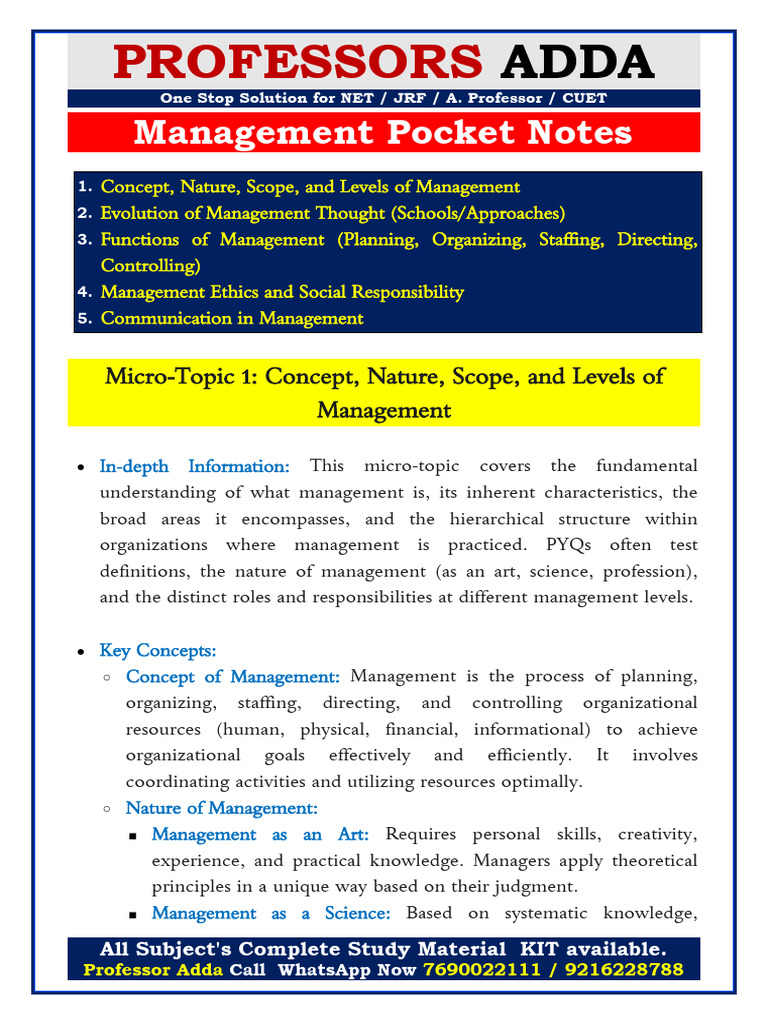 Micro-Topic 1: Concept, Nature, Scope, and Levels of